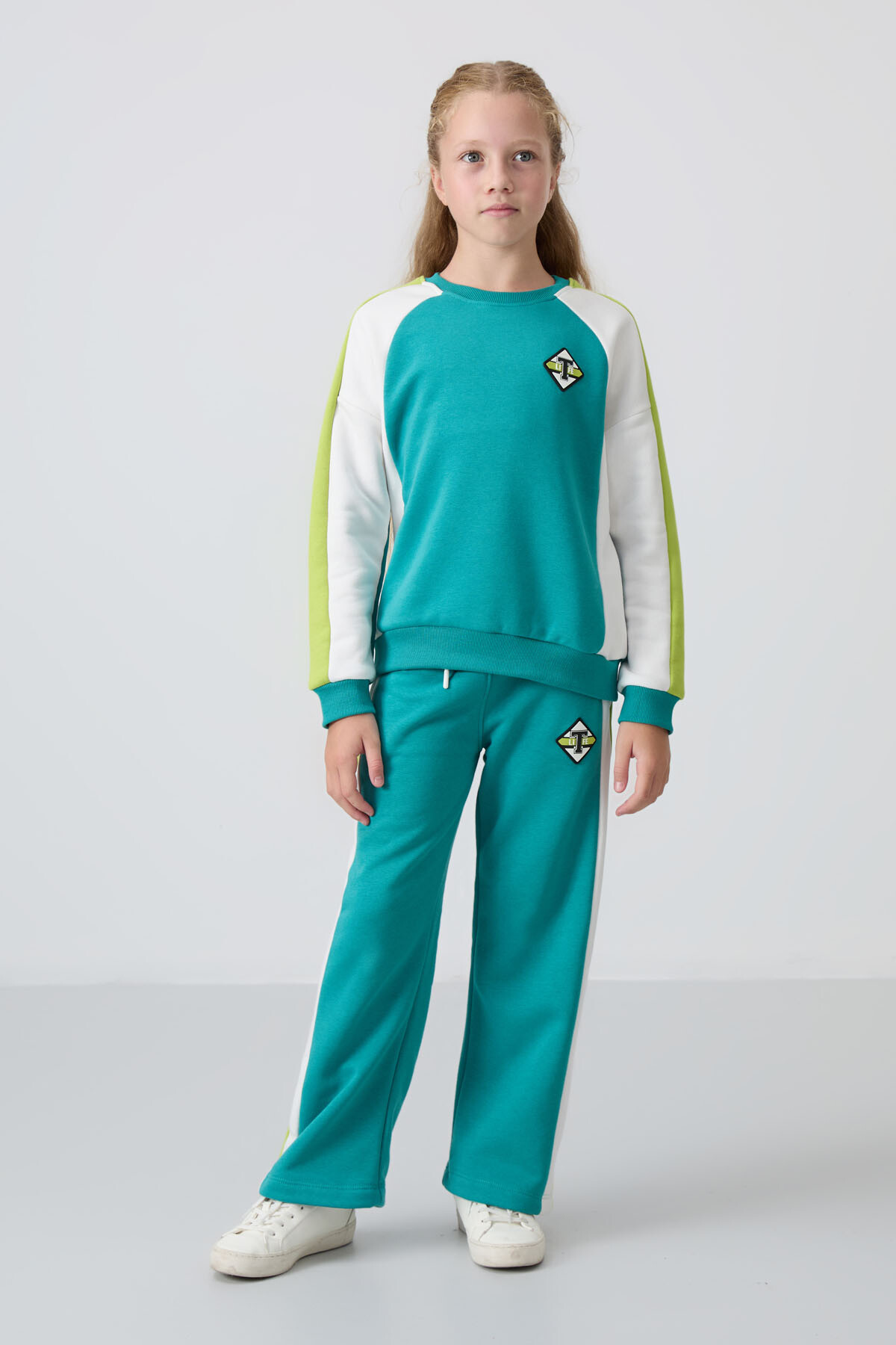 Технические характеристики Код продукта: 75165_794 Сезон: Зима Информация о ткани: 82% хлопок, 18% полиэстер Тип ткани: Тонкий трикотаж 3 нити Информация о крое: Стандартный крой Содержимое продукта / упаковки: Спортивный комплект Из-за света, используемого при фотосъемках, цвета продукта могут различаться Информация о бренде: TOMMYLIFE Данные модели: Рост: 1.41 см / Объем груди: 66 см / Объем талии: 54 см / Объем бедер: 72 см / 9-10 лет Рекомендации по уходу
