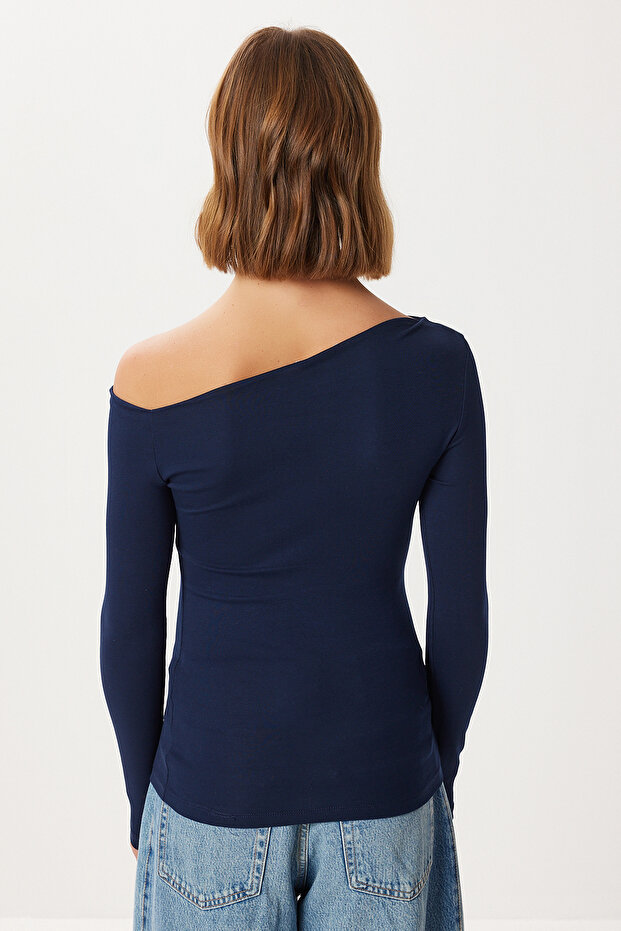 Lovelyİstanbul Açık Omuzlu Büzgülü Örme Bluz LUB0269 BEYAZ