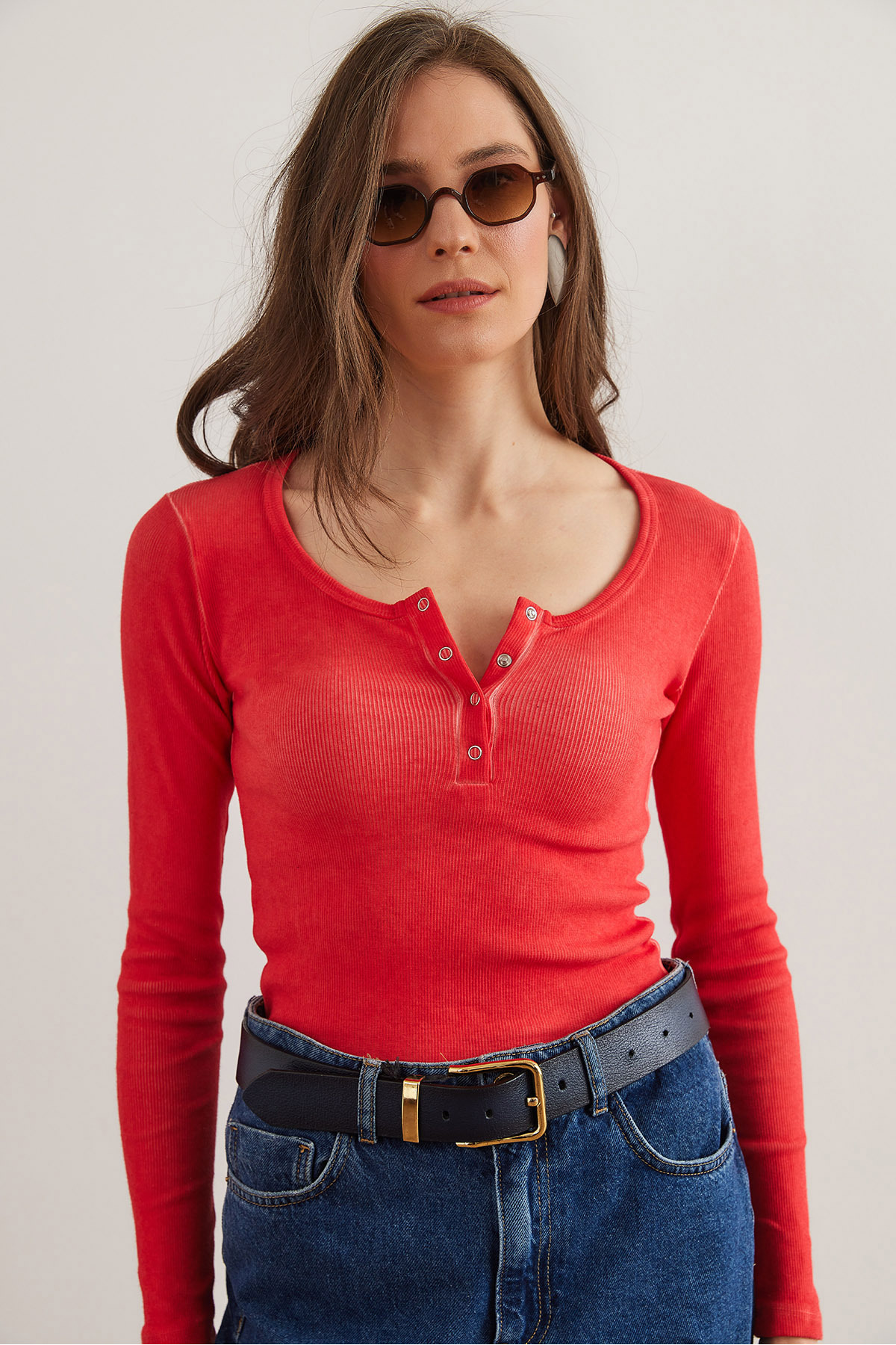 Olalook Kadın Yıkamalı Mercan Patlı Kaşkorse Bluz BLZ-19000588